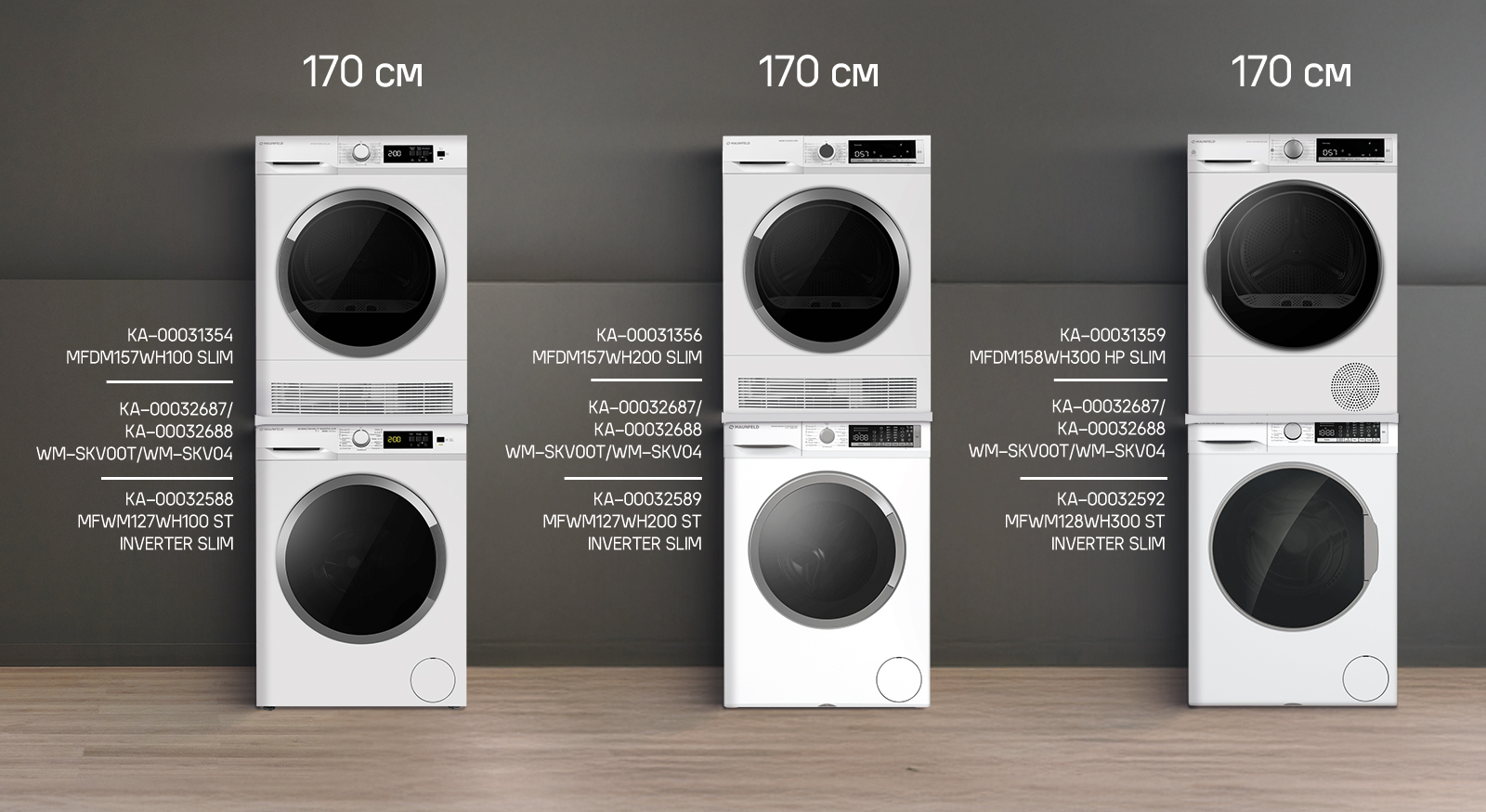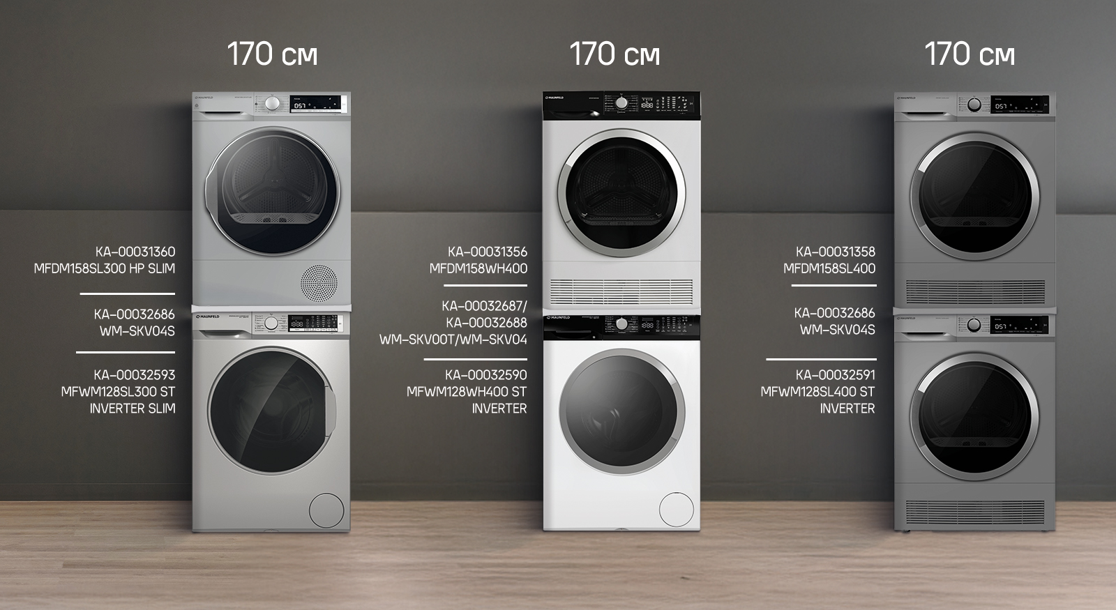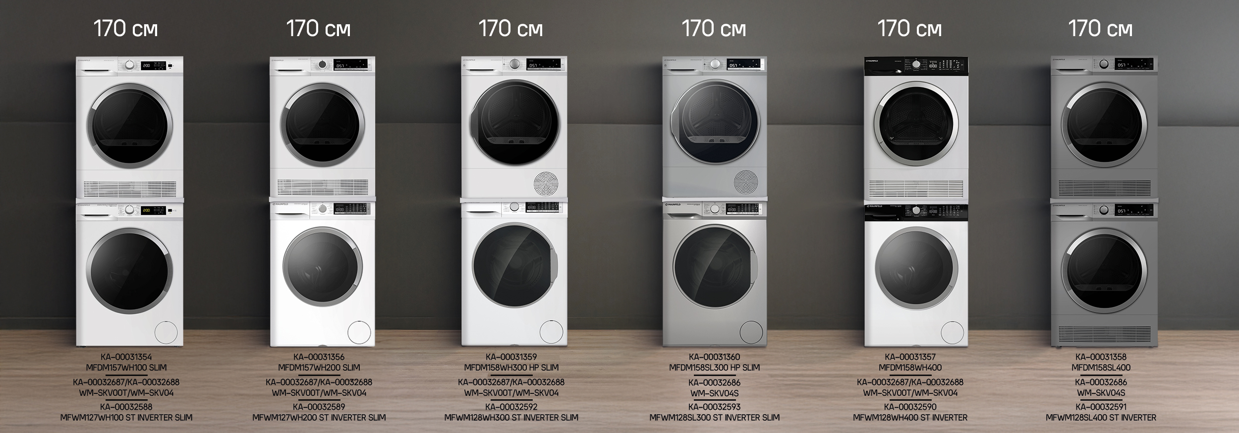 Также в ассортименте MAUNFELD есть готовые стирально-сушильные колонны: